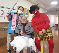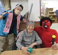 入居者様も鬼めがけて、豆の代わりにカラーボールを投げつけてました!
