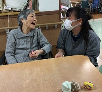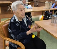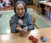 さて、メディス北越谷の入居者様は、本日はお手玉に挑戦中でございます。