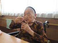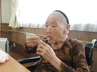 入居者様K様は、今お口の中が荒れてしまっていて、お薬を塗っていて治療中です…。