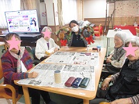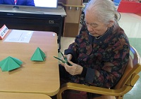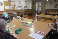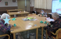 入居者様もそれぞれの思い浮かぶクリスマスソングを口ずさみながら、画用紙でクリスマスツリーを作っていらっしゃいます☆