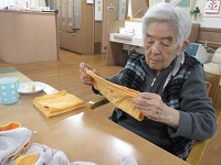 お洗濯をたたむお仕事を、毎日入居者様に行って頂いております!