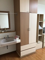 備え付けのタンスと、冷暖房完備、電動ベットもご用意してありますので、身1つでもご入居可能となっております。