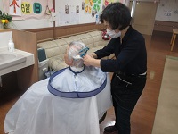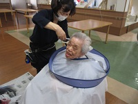 施設では、月に1度理美容を外部の方に来ていただき、ご希望の方には1500円にて髪の毛のカットを行っております。