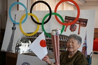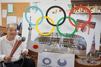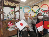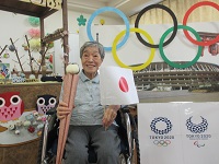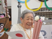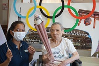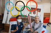 そこで、入居者様にオリンピックにちなんで、聖火ランナー体験して頂きました♬