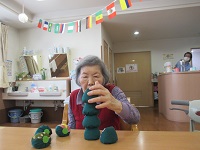 手作りお手玉ふくろうを高く積み上げる競技です♬