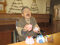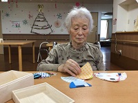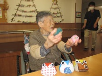『福福ふくろう』を作るときは、それぞれの入居者様ができる工程を担当してもらっています!