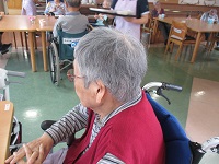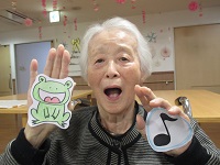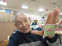 入居者様のお茶目な表情を引き出して写真を撮ってくれたのは、介護リーダーのMさんです!