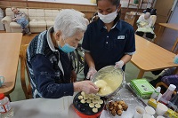 本日は、入居者様とたこやき器で鈴カステラを作って食べたいと思います♪