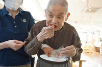 入居者様の嬉しそうな笑顔や「美味しい~」という声を聞き、押田施設長が満足そうな表情をしてました♪