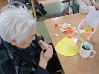 ちぎり絵をするためにまず折り紙をびりびりちぎって、ぺたぺたと貼ってと言った作業のようです!