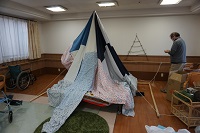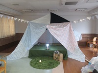 外出できない状況の入居者様に、施設の中でもキャンプに行った気分になって頂きたいという思いで始まりました!