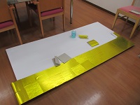 ブログでもご紹介しましたが、年末に施設に内に「神社」を建設し、大成功したことに味を占めた施設長が、今度は「金屏風」を作り始めました。