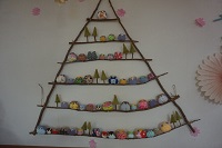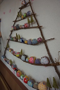 総勢200個の手作りふくろうをなんと小枝に並べ、クリスマスツリーに見立てようという斬新なアイデア!