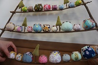 ひとつひとつ色や大きさや模様が違うふくろう軍団たちを、全体のバランスを考えながら宿しました~♪