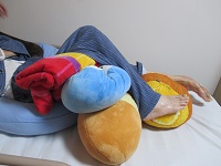 また、1つクッションをいれるだけで、体の筋肉の緊張がほぐれ、曲がっていた腕や膝が伸びることもあることを教えて頂きました。