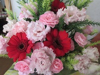 毎週いろいろな色や形のフラワーアレンジメントが届きますが、いつも隣にちょこんと居ます。