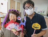 本日はハロウィンということで、スタッフも入居者様も真剣に思いっきりふざけてみました!