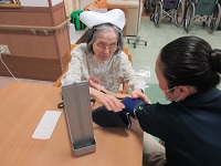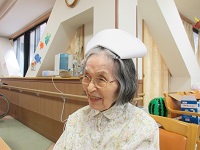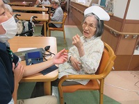 看護師という経歴を持つM様は、ナースキャップを付け、バイタル測定を行いました!