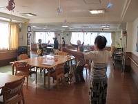 スタッフも「あいてててぇ~」など言いながら、入居者様と一緒に体操します。