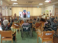 メディス北越谷におきましても、オンラインを利用し、入居者様にレクリエーションを楽しんで頂く工夫を行っております。