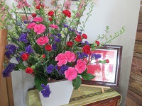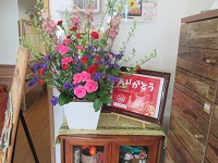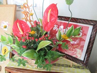お花屋さんから届いたフラワーアレンジメントも元気いっぱいです☆
