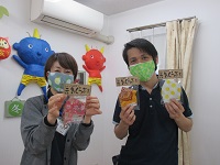 スタッフのMさんが手作りマスクにオリジナルのタグを付けてくれました!