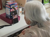 スマートフォンにご家族様のお顔が見えると、入居者様も嬉しそうに笑顔でお話しをされていました。