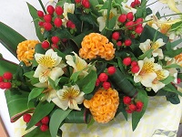 玄関のフラワーアレンジメントが華やかにお客様をお迎えしてます✿