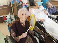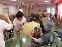 運動会では、入居者様が力を合わせて箱を運んで絵柄を合わせる種目でした!