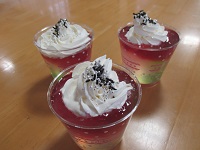 おやつは3色のゼリーにホイップクリームを乗せたもので、お腹も満たされた1日でした♡