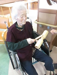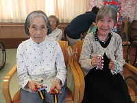 インドネシアから技能実習生として日本に学びに来ているデニさんと当施設最高齢の100歳にしてとてもお元気なF・H様との触れ合いの場面です。