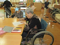 1階の入居者様が一生懸命塗り絵に取り組んでいらっしゃいました♪