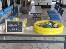 スイカ割りや冷たいジュースやノンアルコールビールなどで夏を味わって頂きました!
