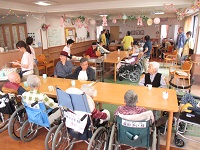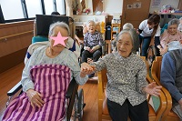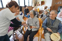 歌を歌うだけではなく、体をたくさん使って、楽器でリズムを取り、昔の事を思い出し、現在の事を新しく記憶し、めいいっぱい頭と身体に刺激を送る1時間です♪