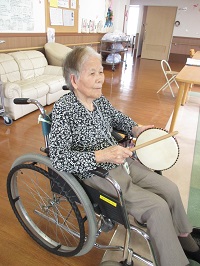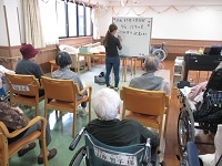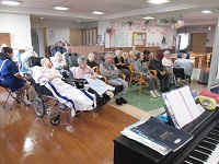 毎月2回開催しております音楽療法では、プロの音楽療法士の先生が1時間プログラムに沿ってセッションを行います。