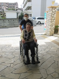 訪問リハビリの先生と今日は屋外でリハビリです!