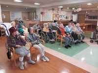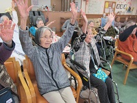 春や卒業にちなんだ選曲で季節を感じて、身体運動の誘発により活動性の向上をめざし、回想・発話促進により満足感を得て、次回へつなげていくようなプログラムでした!
