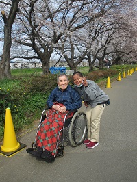 メディス北越谷は元荒川のすぐそばにありますので、毎年桜の季節は入居者様にお花見をお楽しみ頂いております。