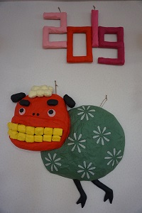 すごくすごく可愛らしいイノシシだるまと獅子舞がフロアを明るくしてくれています☆