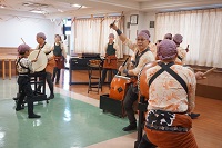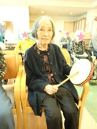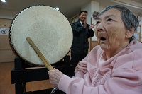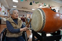 「伍柳会」のイベントでは、入居者様にも実際に太鼓に触れ合う機会を作って頂きました。