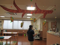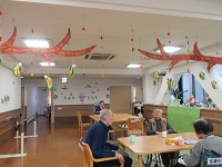 食堂の雰囲気も明るくなり、入居者様も見上げて「可愛い」」とおっしゃっています。