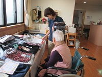 施設の生活の中では、なかなかお買物をする機会がなく、久々のお買物に、みなさま真剣な表情で品定めなさっていました。