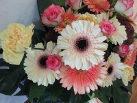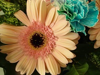 今週届いたお花は、ピンクの可愛らしいガーベラと、3色の花びらが特徴的なカーネーションで、すごく惹き付けられる作品です♡