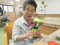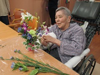 アートエンディング様主催で、たくさんの生花をお持ちいただき、入居者様もお好きなお花をお好きなだけ選んで活けることができ、とても楽しそうでした。