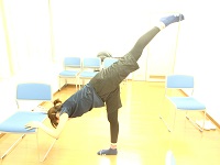 片足バランスでも右足を上げると体を傾けないとバランスがとりづらい様子がよくわかります。