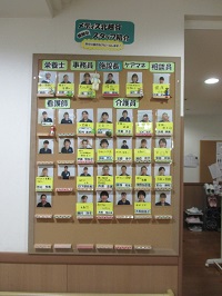 当施設ではエレベーターの横にスタッフの顔写真を掲示しております。