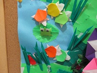 1Fの壁に折り紙で作られたお魚が泳いでいます♪