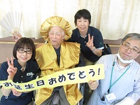 当施設では、入居者様のお誕生日に記念写真をお撮りしています。