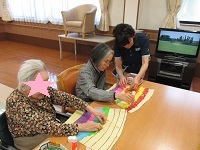 壁装飾の師匠が、入居者様と一緒に何やら作品作りをしています♪