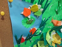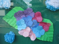 折り紙作品の神技を持つ師匠の、介護職員Kさんの作品が玄関に飾られています。